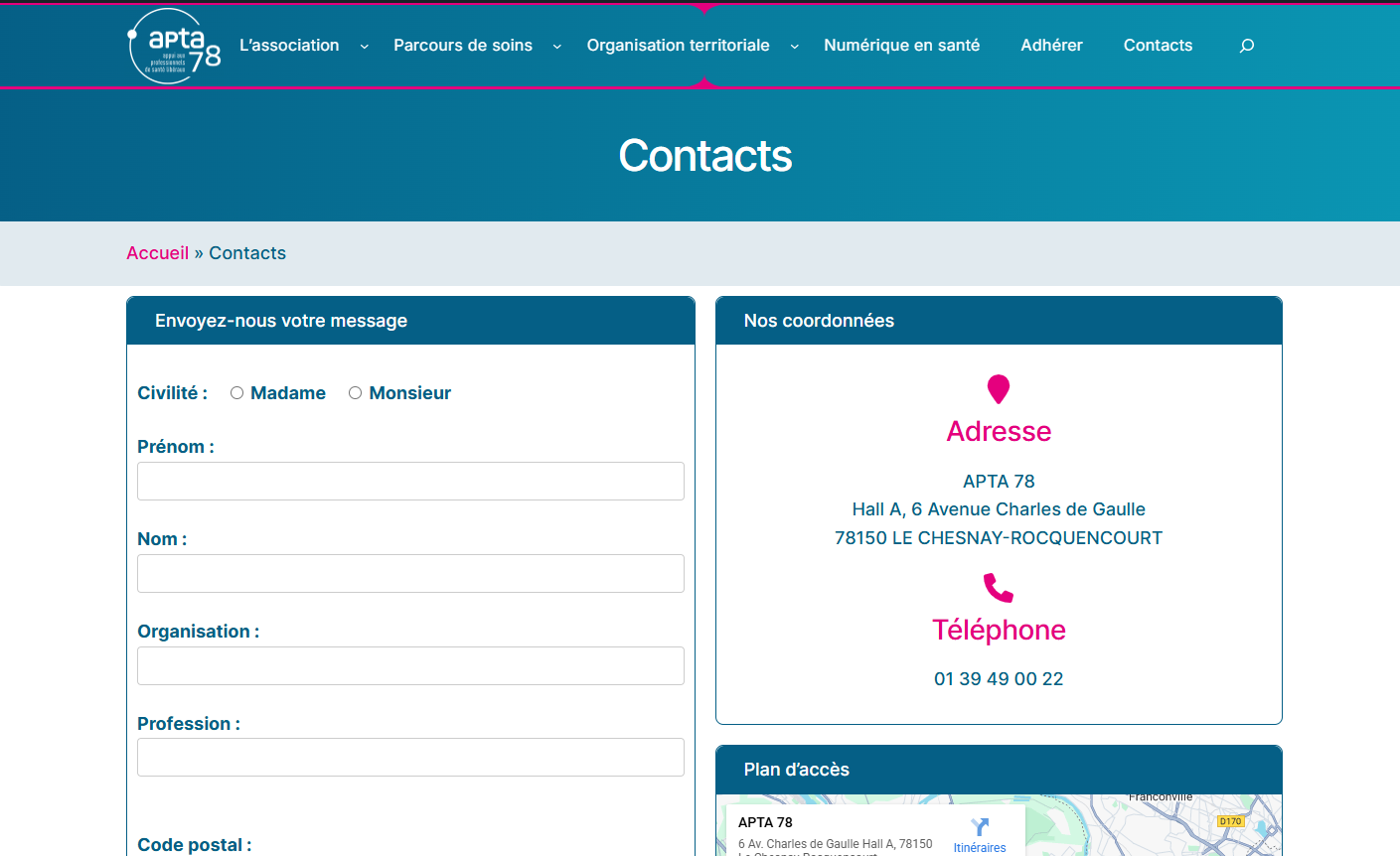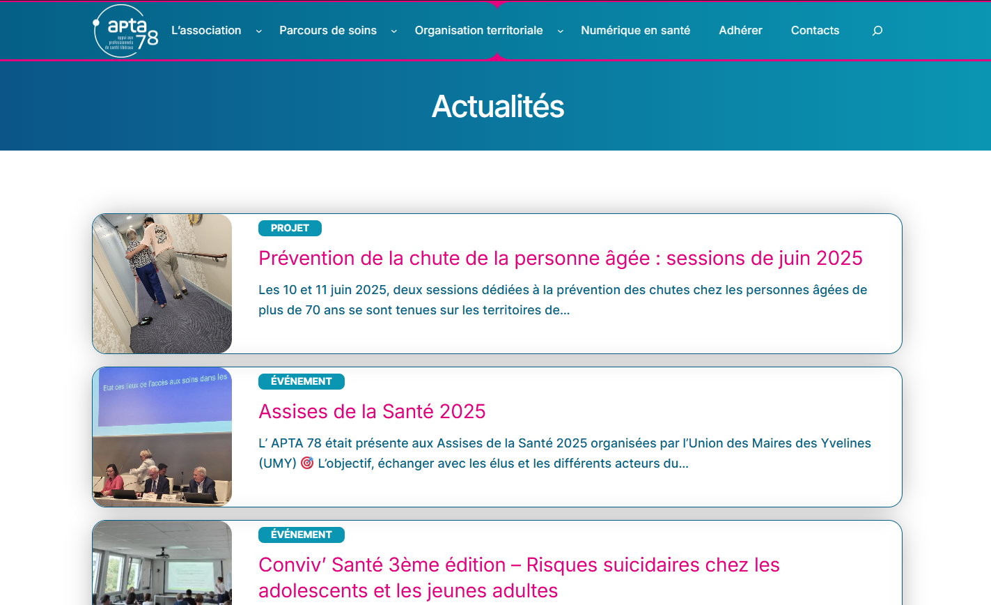 Après quelques semaines de développement, le site de l’APTA 78 est aujourd’hui en ligne et pleinement fonctionnel.