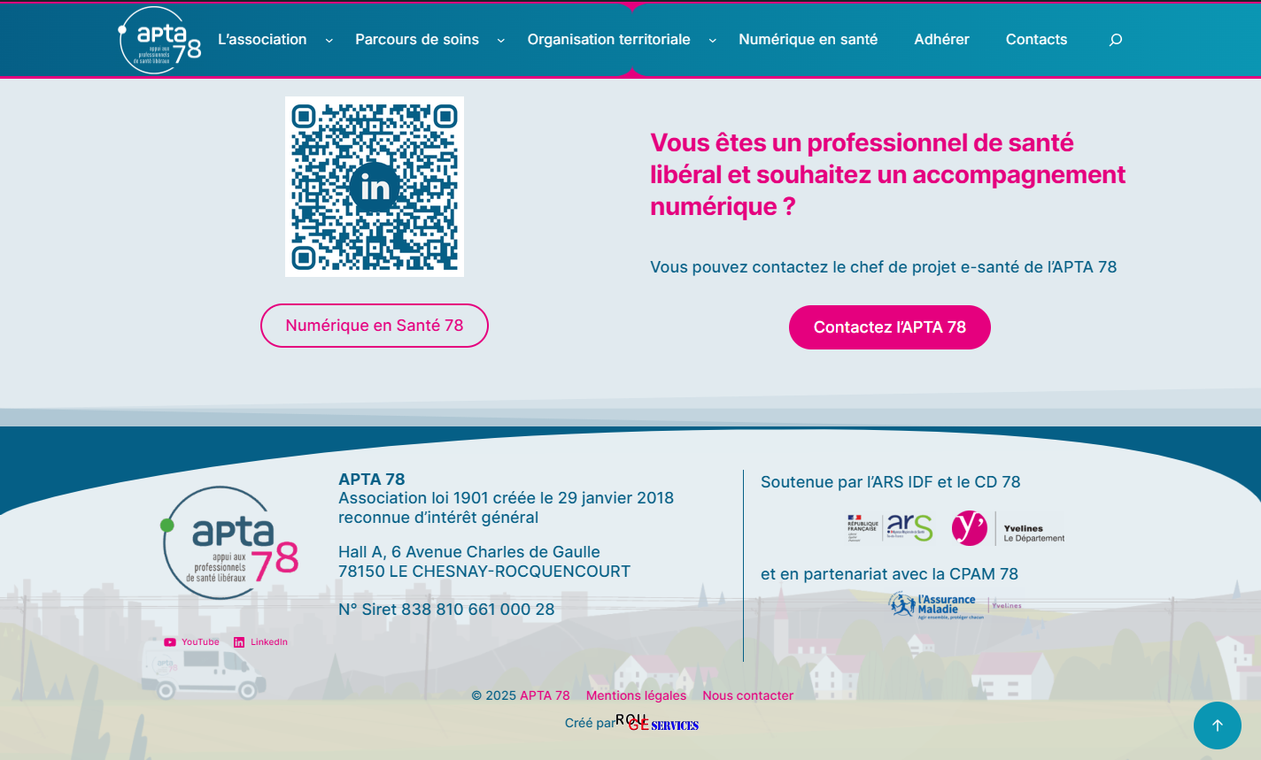 l’APTA 78, Association d’appui aux professionnels de santé libéraux des Yvelines, est une association reconnue d’intérêt général, créée en 2018 à l’initiative de médecins libéraux, avec le soutien de l’ARS Île-de-France et du Conseil départemental des Yvelines.
